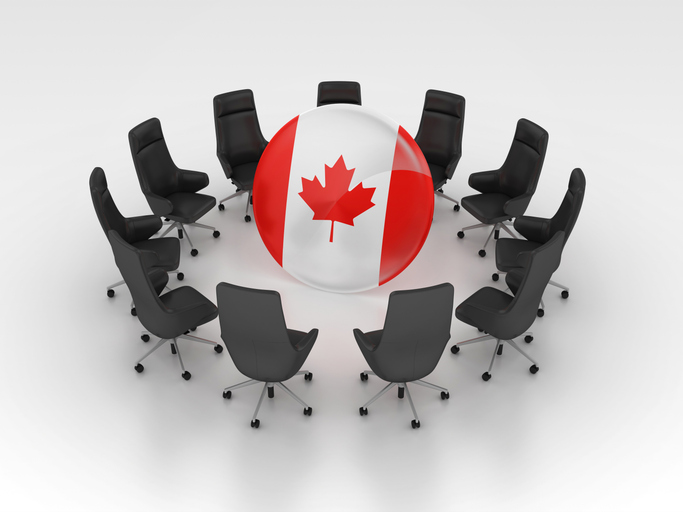 Canadian Flag with Chairs - Gray Background - 3D Rendering